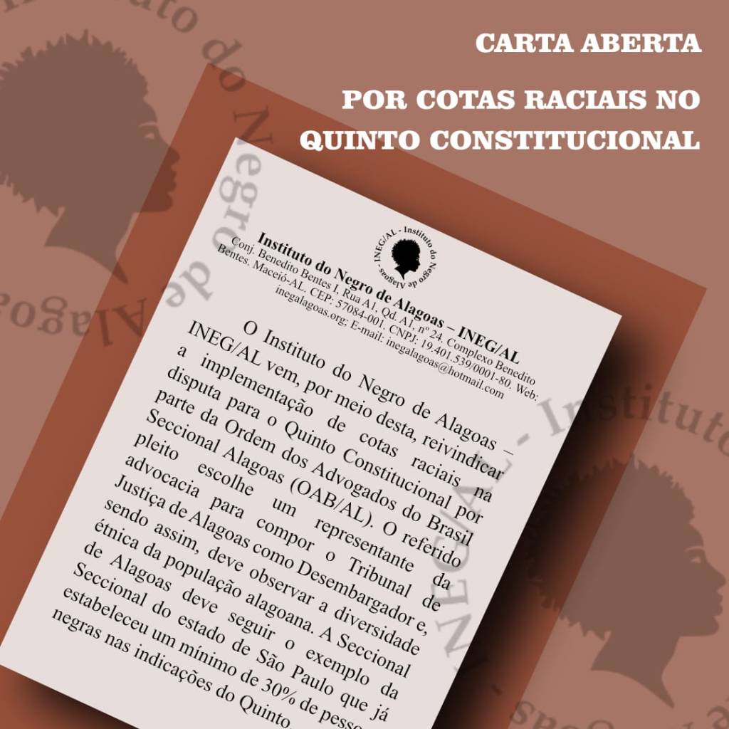 Confira abaixo e compartilhe a Carta Aberta Por Cotas Raciais no Quinto Constitucional da OAB/AL!