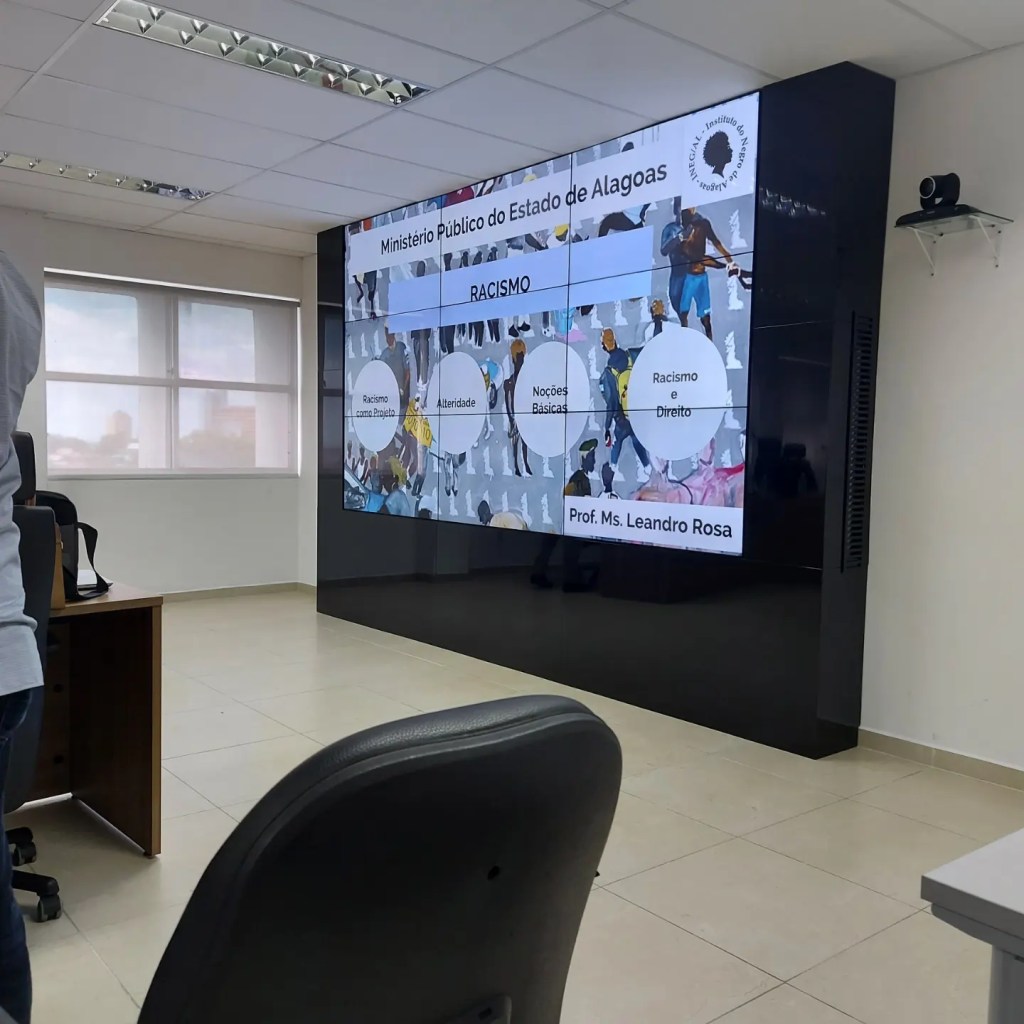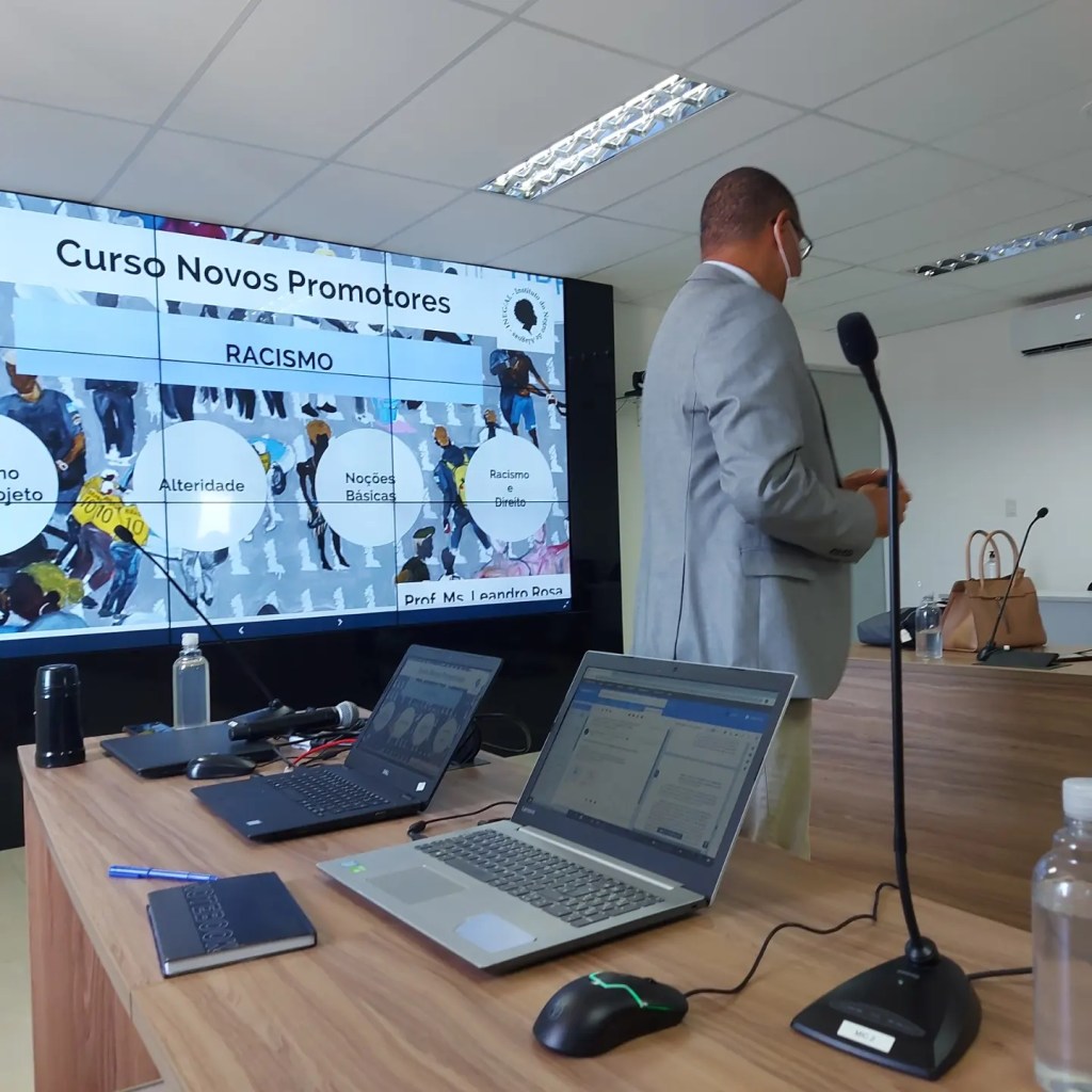Na última sexta-feira estivemos nas dependências da sede do Ministério Público Estadual para participarmos do processo de formação para os(as) novos(as) Promotores(as) da casa, intitulado Curso de Formação Para Novos Promotores. A atividade, promovida pela Escola Superior do Ministério Público de Alagoas (ESMP), teve início no início do mês de janeiro e teve dentre os temas abordados “A importância da formação humanística e interdisciplinar dos membros do Ministério Público”, “Atuação da Ouvidoria do Ministério Público de Alagoas”, dentre outros. A nós, coube o debate racial com o tema “Racismo estrutural e suas implicações: apontamentos para uma atuação pública”. O debate, promovido pelos membros do INEG/AL, Leandro Rosa e Jeferson Santos, abordou aspectos centrais em nossas relações raciais, tais como as noções de raça, de eugenia, dentre outras. A ação é fruto de diálogo nosso com a Escola Superior do Ministério Público, visando a regularidade da temática racial nos processos formativos da instituição.