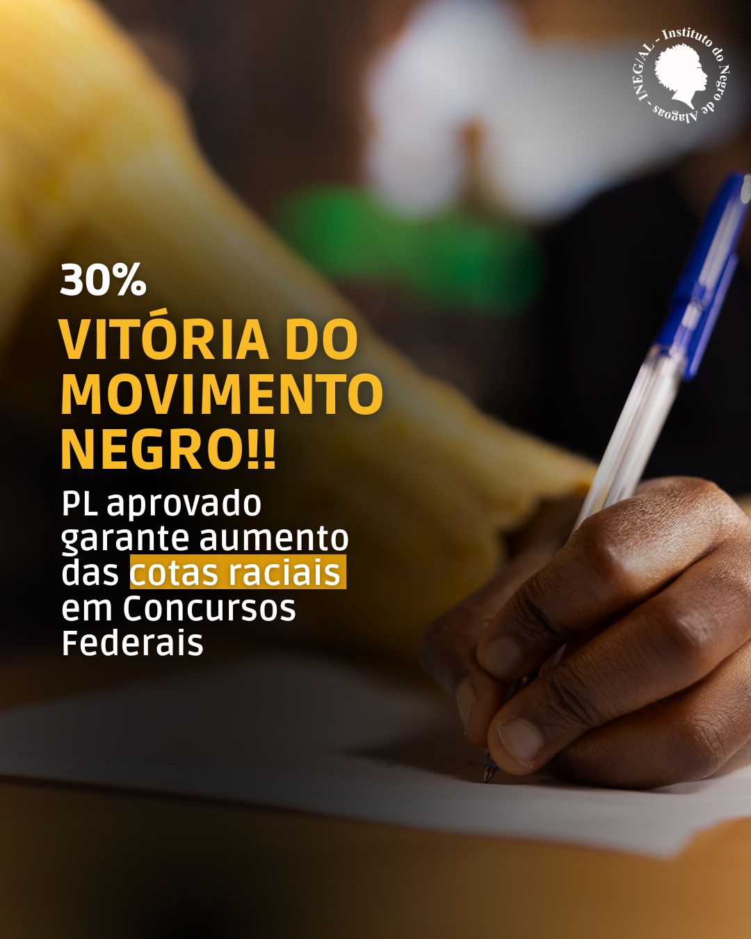 O Instituto do Negro de Alagoas (INEG/AL) comemora a aprovação pelo Senado Federal do Projeto de Lei que amplia as cotas raciais em concursos públicos de 20% para 30%. O projeto, de autoria do senador Paulo Paim (PT-RS) e relatoria do senador Humberto Costa (PT-PE), segue agora para a sanção do presidente Luiz Inácio Lula da Silva (PT). A decisão representa uma vitória significativa para o movimento negro e grupos historicamente marginalizados.