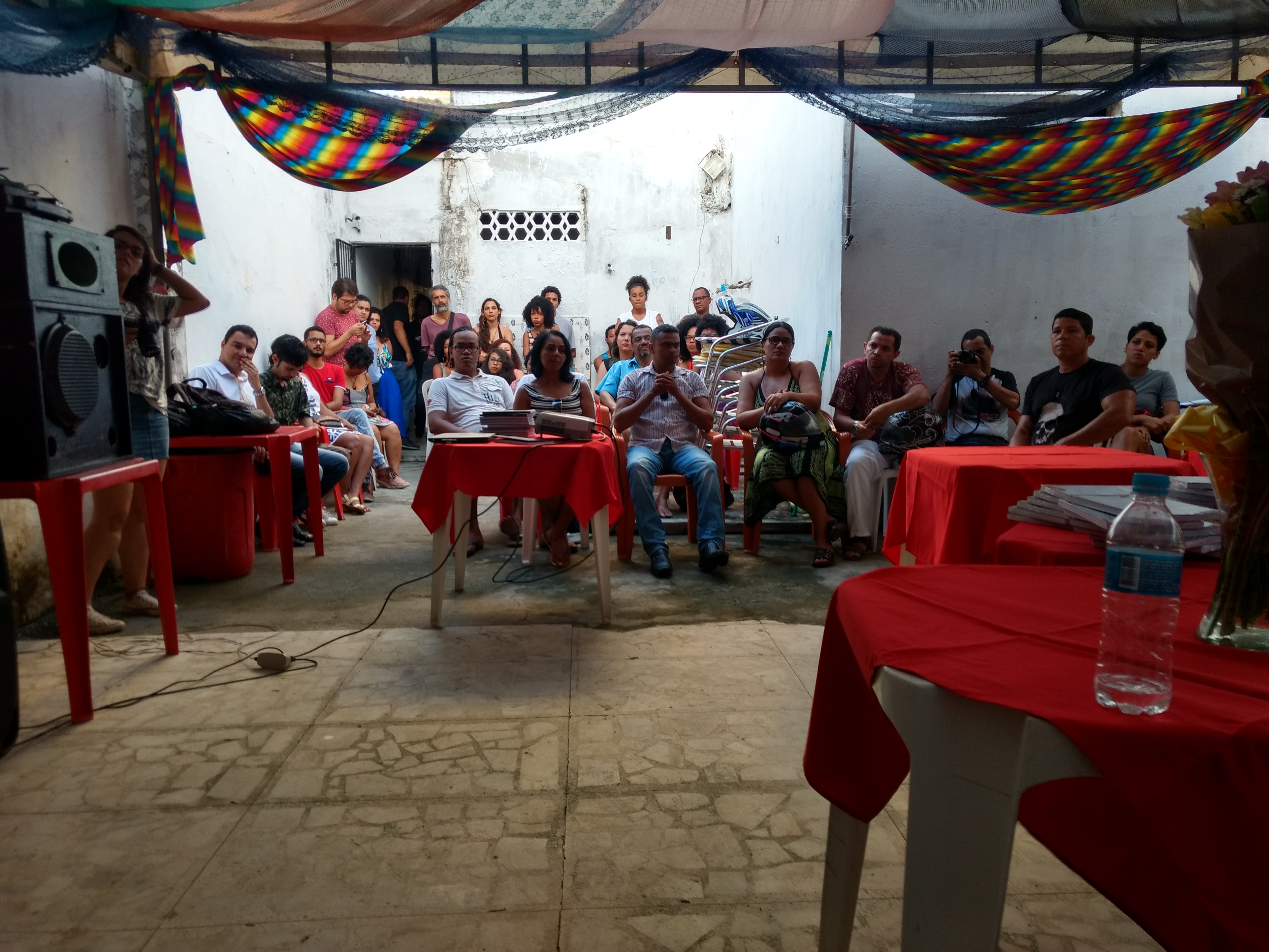 Last Saturday, May 19, 2018, was marked by the book’s release: Black Head: researches on racial issue in Alagoas, first publication of the Black Institute of Alagoas. The afternoon was, in a first moment, the reunion of several groups of the black Alagoan movement. A historical moment for the book’s release that brings together black writers, who dedicate themselves to the theoretical debate and to demand concrete actions for the black population in the state of Alagoas. The audience that attended can hear and debate together with the authors of the book. The speeches addressed various aspects of the black reality, such as religiosity, racial ethnic education, intervention projects in peripheries, dance expressions, political reflections, Capoeira, Hip Hop, among other subjects.