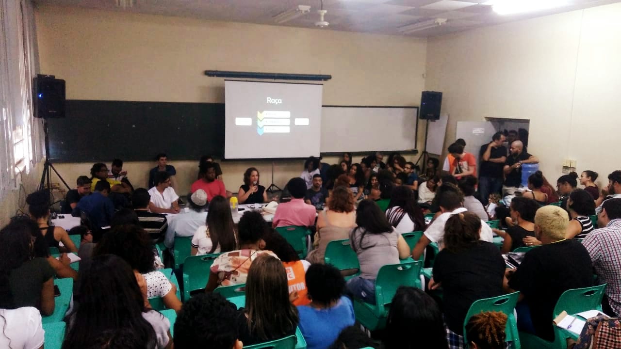 On the afternoon of June 13 of the current year, the project Black Protagonism o was presented to the high school students of the Rubens Canuto School. In order to instigate their participation, two small videos were shown. The first one, showed the testimonies of black youths reporting the common problems they face daily, such as routine police approaches and also stereotyped questions, which presuppose that blacks have this or that occupation, shown in the video by the speech of a young black girl who questioned the fact that a person had asked her about which samba school she would be affiliated with, instead of asking her which college course she attended. After that, another video was presented aimed Brazilian racial inequalities, evident in the proportion of access to higher education; in the composition of the prison population; in the consumption of consumer goods and social equipments, indispensable to the well-being of any population.